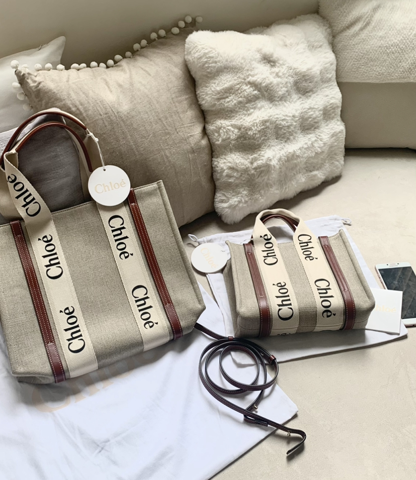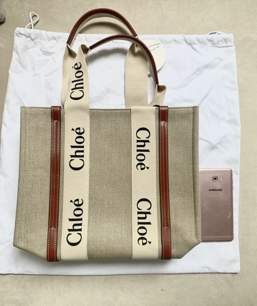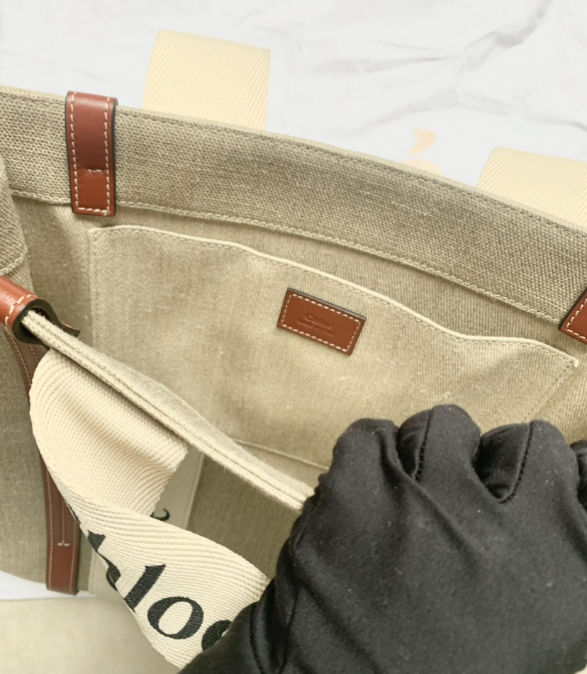 Tote bag in linen canvas & shiny calfskin with Chloé logo
